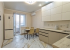 Евродвушка с современным дизайнерским ремонтом: качественная отделка с использованием премиальных материалов; кухня со стол...